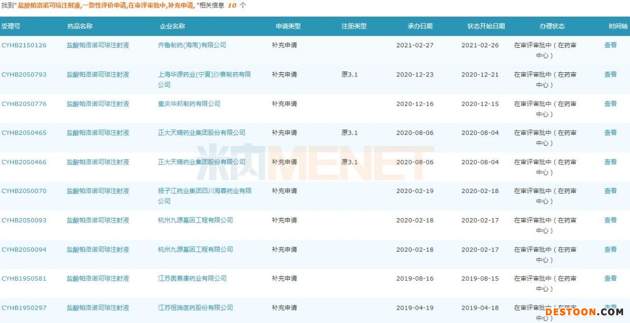 鹽酸帕洛諾司瓊注射液生產(chǎn)廠家有齊魯制藥(海南)、正大天晴藥業(yè)集團(tuán)、揚子江四川海蓉藥業(yè)、江蘇恒瑞醫(yī)藥等15家,其中,齊魯制藥(海南)和遼寧海思科制藥兩家以補(bǔ)充申請獲批過評。目前,江蘇恒瑞醫(yī)藥、江蘇奧賽康藥業(yè)、正大天晴藥業(yè)集團(tuán)、杭州九源基因等8家企業(yè)的一致性評價補(bǔ)充申請在審評審批中。此外,四川匯宇制藥、四川美大康佳樂藥業(yè)等4家企業(yè)以仿制4類提交上市申請在審評審批中,獲批后將視同過評。