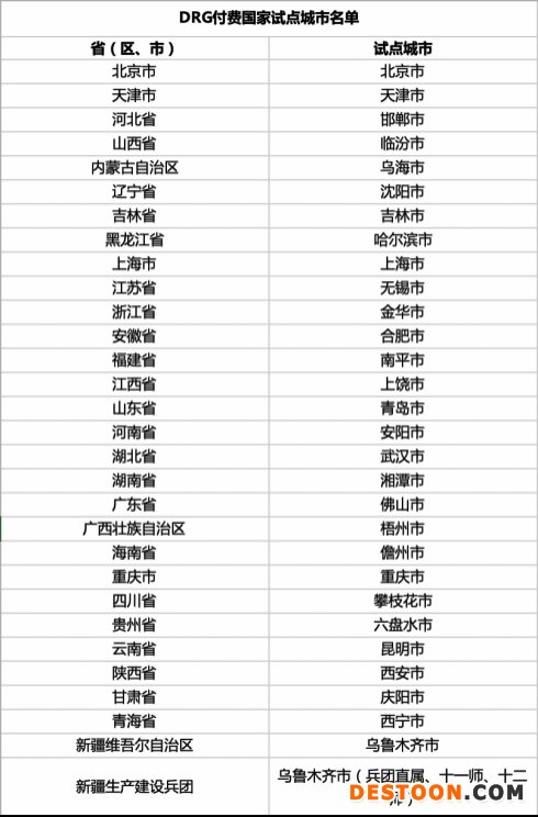 2020年11月4日,國(guó)家醫(yī)保局網(wǎng)站公布《國(guó)家醫(yī)療保障局辦公室關(guān)于印發(fā)區(qū)域點(diǎn)數(shù)法總額預(yù)算和按病種分值付費(fèi)試點(diǎn)城市名單的通知》,27個(gè)?。ㄖ陛犑校?1個(gè)城市納入DIP付費(fèi)試點(diǎn),分別為: