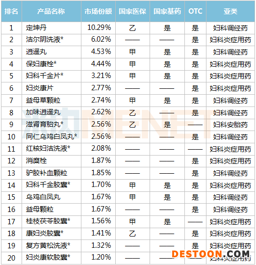 2020E重點城市實體藥店婦科中成藥品牌TOP20