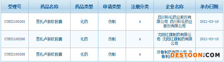 3月11日訊 3月10日,科倫、齊魯、沈陽紅旗制藥以仿制4類提交恩扎盧胺軟膠囊上市申請(qǐng),該產(chǎn)品在國(guó)內(nèi)暫無首仿獲批。恩扎盧胺(恩雜魯胺)是一款雄激素受體抑制劑,2019年全球銷售額超過40億美元。