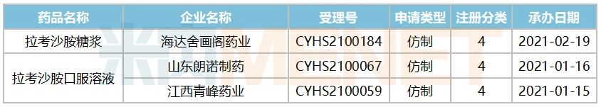 表1:目前在審的拉考沙胺糖漿及口服溶液仿制上市申請(qǐng)情況