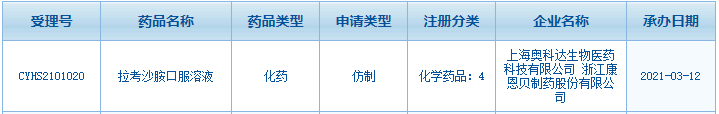 圖1:康恩貝的拉考沙胺口服溶液申報(bào)情況