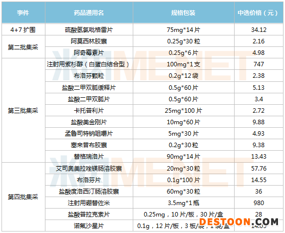 四批集采石藥集團中選情況