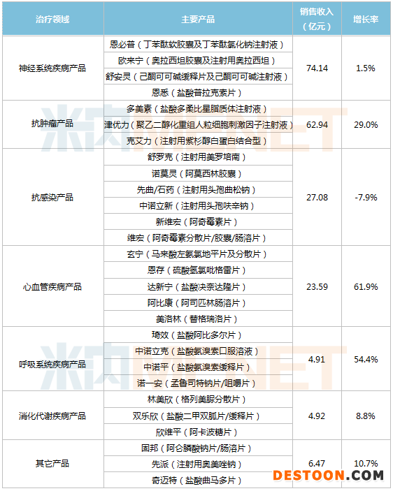 石藥集團成藥業(yè)務各治療領(lǐng)域產(chǎn)品銷售情況