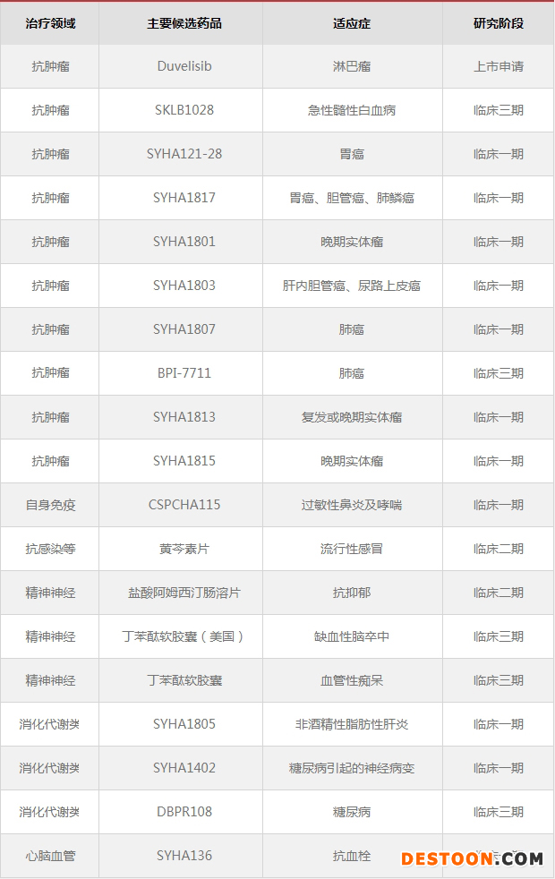 石藥集團主要在研小分子創(chuàng)新藥