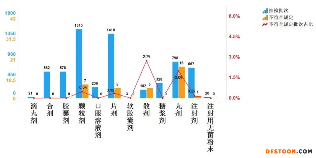 圖13. 抗病毒中成藥專項(xiàng)各劑型檢驗(yàn)信息示意圖