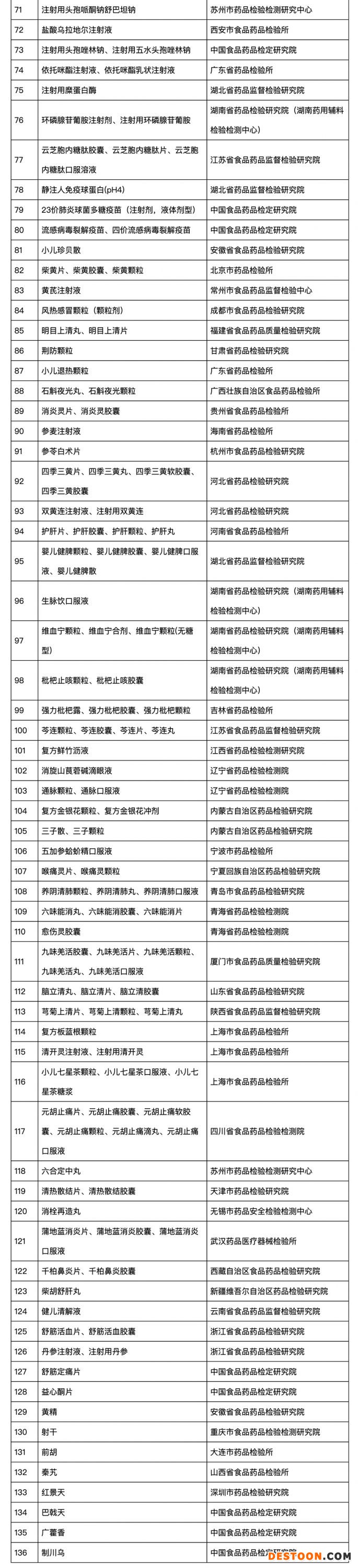 各類藥品抽檢結(jié)果