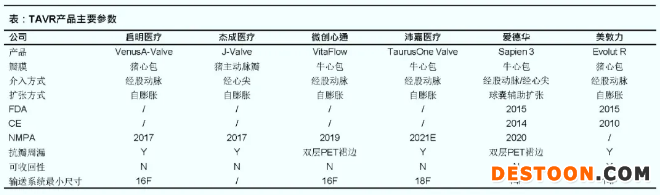 從技術上來看,目前已經(jīng)上市的這些產(chǎn)品存在較大的差異,主要體現(xiàn)在瓣膜原材料、介入方式和擴張方式等數(shù)據(jù)上。