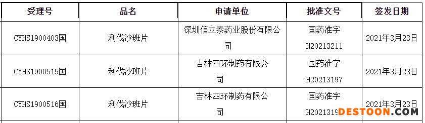 3月29日訊 3月25日,NMPA發(fā)布最新藥品批準(zhǔn)信息,再有兩家藥企獲得了利伐沙班片的生產(chǎn)批文,目前該品種過評企業(yè)已達12家。利伐沙班是全球最暢銷的抗血栓藥,2020年合計全球銷售額超過70億元,原研產(chǎn)品進入中國市場后銷售額也一路飆漲,但隨著在中國的專利到期,國產(chǎn)仿制藥已蓄勢待發(fā),國采激戰(zhàn)勢不可擋。