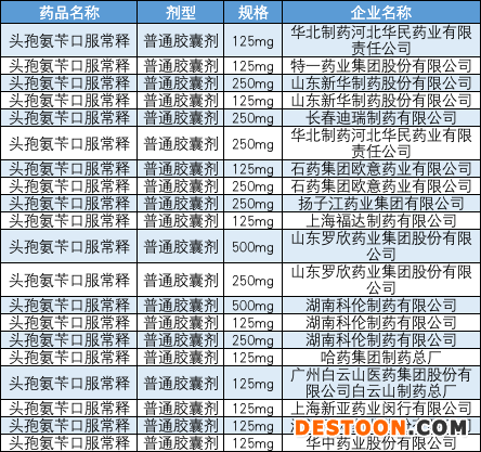 雖然膠囊劑是不再納入未過(guò)評(píng)產(chǎn)品參與競(jìng)爭(zhēng),但是由于過(guò)評(píng)產(chǎn)品眾多,競(jìng)爭(zhēng)也是十分激烈的。據(jù)不完全統(tǒng)計(jì),截至2021年3月24日頭孢氨芐膠囊已有20個(gè)品規(guī)過(guò)評(píng),涉及白云山、揚(yáng)子江、哈藥、華北制藥等14家藥企。