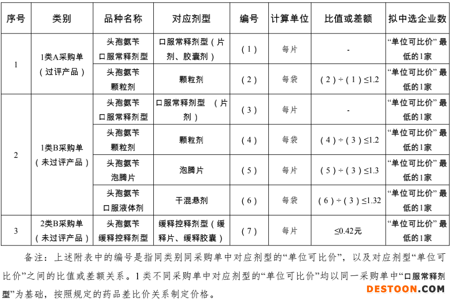 符合上述兩類(lèi) A、B采購(gòu)單的頭孢氨芐產(chǎn)品列入本次聯(lián)盟地區(qū)集團(tuán)帶量采購(gòu)清單。形成1類(lèi)A采購(gòu)單/1類(lèi)B采購(gòu)單/2類(lèi)B采購(gòu)單,各采購(gòu)清單中選結(jié)果采取各自競(jìng)價(jià)方式形成。