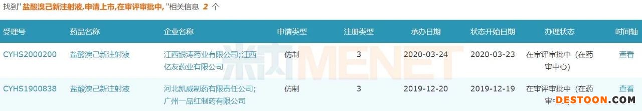 目前,溴己新注射劑有鹽酸溴己新注射液、注射用鹽酸溴己新和鹽酸溴己新葡萄糖注射液。其中,鹽酸溴己新注射液生產(chǎn)企業(yè)有華潤雙鶴藥業(yè)、四川美大康佳樂藥業(yè)、石家莊四藥等6家。其中,僅有四川美大康佳樂藥業(yè)和石家莊四藥兩家企業(yè)過評。此外,河北仁合益康藥業(yè)和上海旭東海普藥業(yè)的一致性評價補充申請在審評審批中,江西銀濤藥業(yè)|江西億友藥業(yè)、河北凱威制藥|廣州一品紅制藥以仿制3類報產(chǎn)在審評審批中,獲批后將視同過評。