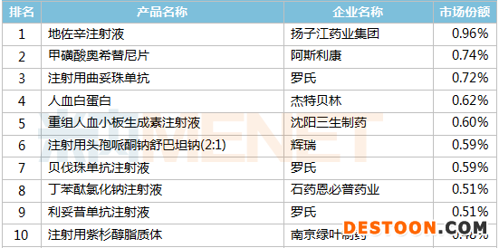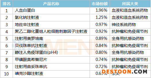 2020年重點(diǎn)省市公立醫(yī)院化藥產(chǎn)品TOP10