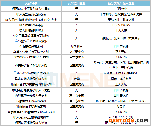 新分類報(bào)產(chǎn)在審且暫無首仿的吸入劑