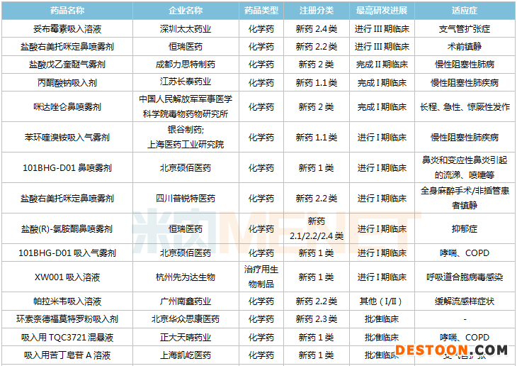 吸入劑國產(chǎn)新藥在研情況
