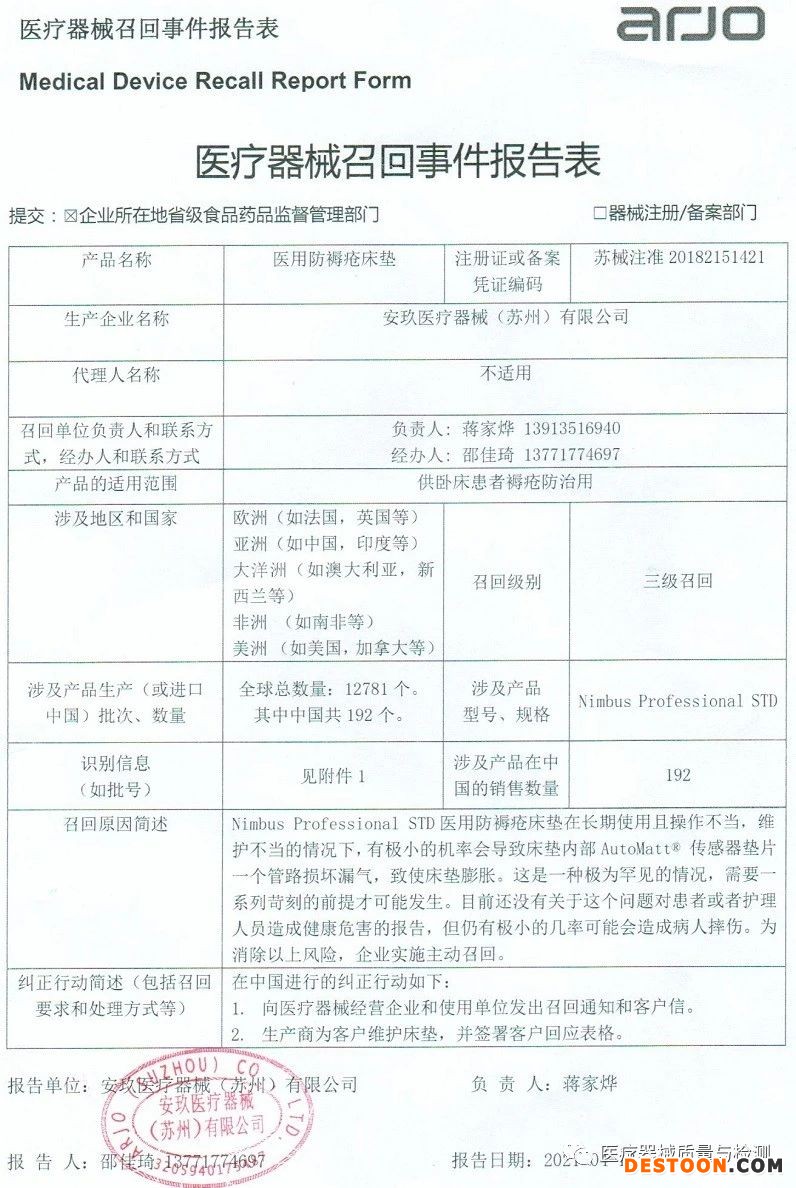 4月19日,據(jù)國家藥監(jiān)局消息,安玖醫(yī)療器械(蘇州)有限公司對醫(yī)用防褥瘡床墊主動召回,報告指出,該企業(yè)生產(chǎn)的Nimbus Professional STD醫(yī)用防褥瘡床墊在長期使用且操作不當(dāng),維護(hù)不當(dāng)?shù)那闆r下,有極小概率會導(dǎo)致傳感器墊片損壞漏氣,致使床墊膨脹。現(xiàn)主動召回,召回級別為三級。