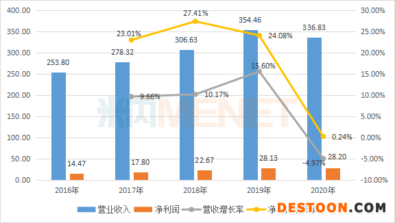 上市公司年報數(shù)據(jù)顯示,2016-2019年,華東醫(yī)藥業(yè)績“節(jié)節(jié)攀升”,2020年受新冠疫情及國家集采等疊加影響,公司實現(xiàn)營業(yè)收入336.83億元,同比下降4.97%;歸母凈利潤28.20億元,同比增長0.24%。