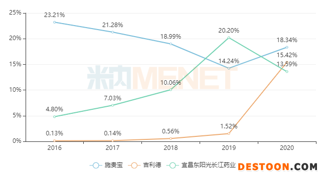 圖2:2020年全身用抗病毒藥TOP3企業(yè)的份額趨勢