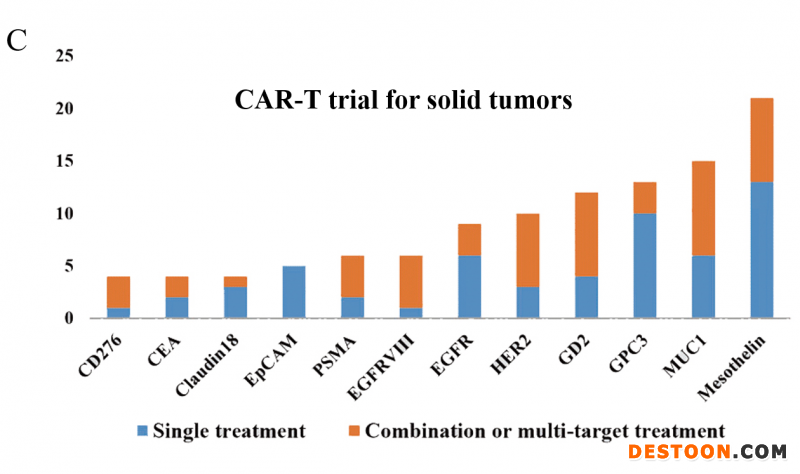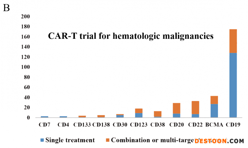 世界上第一個(gè)CAR-T臨床試驗(yàn)于2003年在美國啟動(dòng),用于治療上皮性卵巢癌。在中國,第一個(gè)CAR-T試驗(yàn)于2012年發(fā)布,旨在研究CD20靶向CAR-T細(xì)胞治療化療耐藥或難治的淋巴瘤患者的可行性。