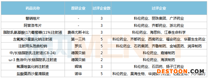 多個品種競爭格局良好,中/長鏈脂肪乳注射液(C8-24)、ω-3魚油中/長鏈脂肪乳注射液兩個品種過評企業(yè)僅有2家,替硝唑片、阿昔洛韋片、脂肪乳氨基酸(17)葡萄糖(11%)注射液、氟康唑氯化鈉注射液等4個品種過評企業(yè)均達(dá)3家。
