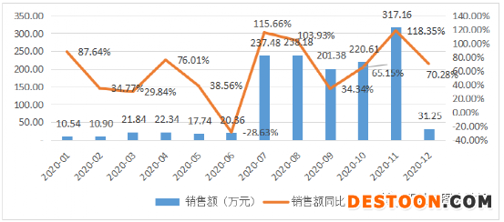 圖3:2020年淘寶天貓渠道佛手銷售額及同比