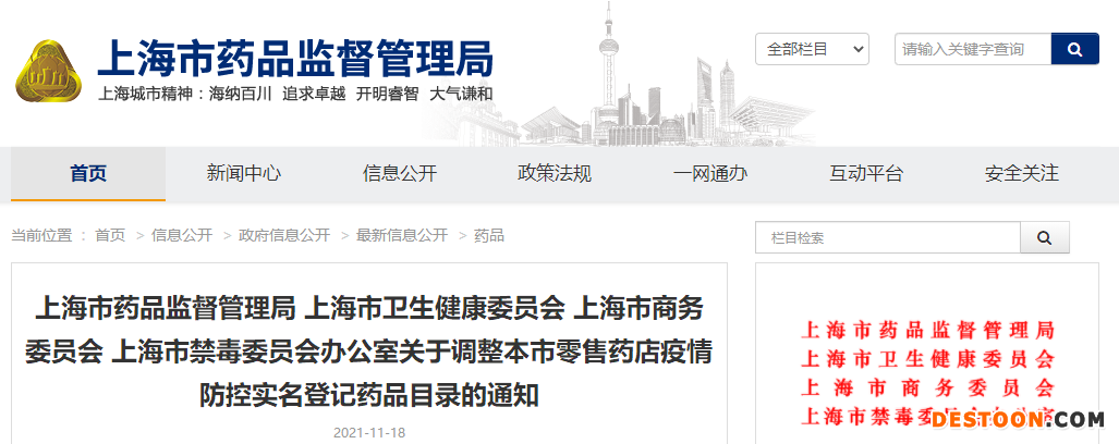 11月18日,上海市藥監(jiān)局、衛(wèi)健委等多個(gè)部門聯(lián)合發(fā)布了《關(guān)于調(diào)整本市零售藥店疫情防控實(shí)名登記藥品目錄的通知》(以下簡稱《通知》)。