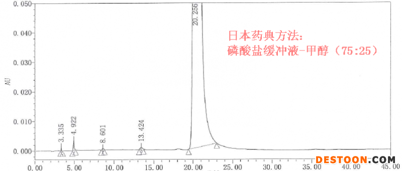 • 酸性化合物,可以選擇非緩沖的流動相進(jìn)行pH調(diào)節(jié),用單一的酸溶液(一般常用磷酸)進(jìn)行色譜分離,酸的濃度應(yīng)足以使pH值比需要值低的多。