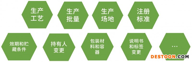 藥品上市后變更包括注冊管理事項(xiàng)變更和生產(chǎn)監(jiān)管事項(xiàng)變更,也就是涉及注冊批件和生產(chǎn)許可證相關(guān)事項(xiàng)的變更。依據(jù)變更對藥品安全性、有效性和質(zhì)量可控性的風(fēng)險(xiǎn)和產(chǎn)生影響的程度,將變更劃分為審評類變更,備案類變更和報(bào)告類變更。